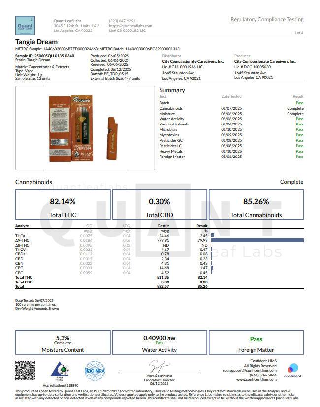 • 82.14% total THC potency